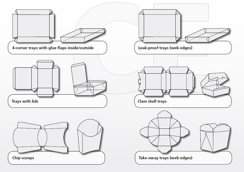 | 使用材料 | 200-600gsm卡紙,PE涂層紙,牛皮紙,瓦楞紙 | |